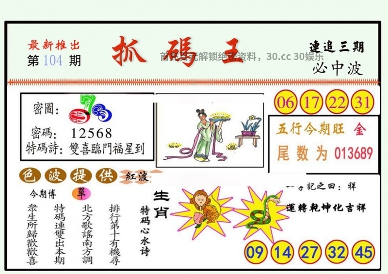 104期:九肖【猴龙鼠马虎鸡蛇猪】开:狗32准